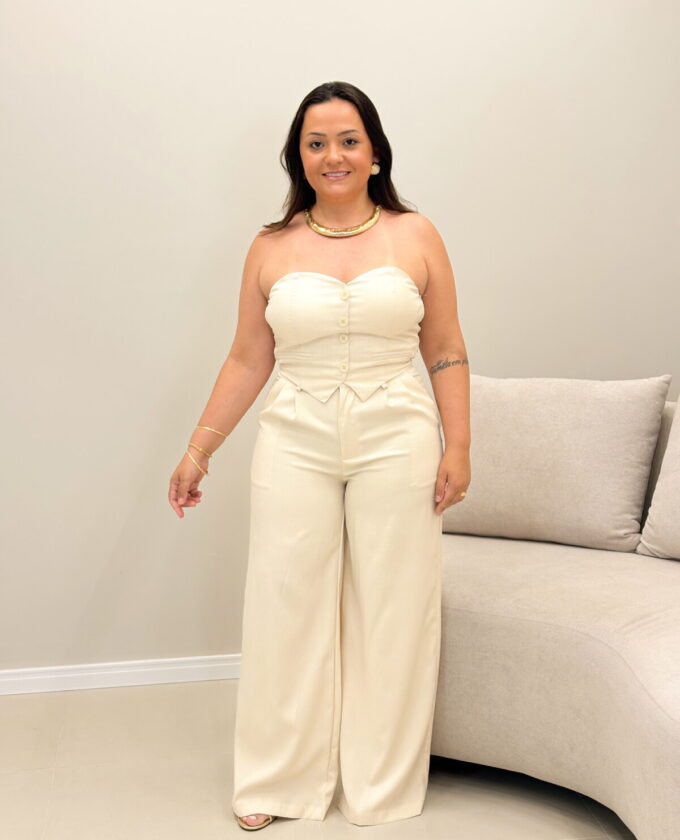 Medidas da Calça (P): Cintura 72cm, Quadril 106cm, Comprimento 107cm;