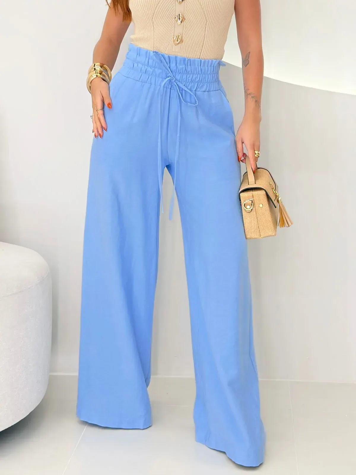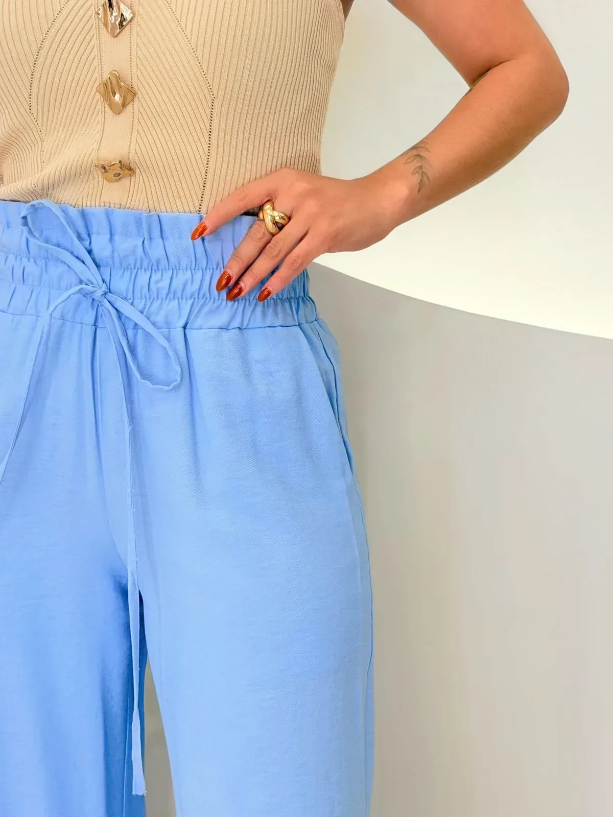 Sua modelagem pantalona alonga a silhueta e proporciona movimento sofisticado.