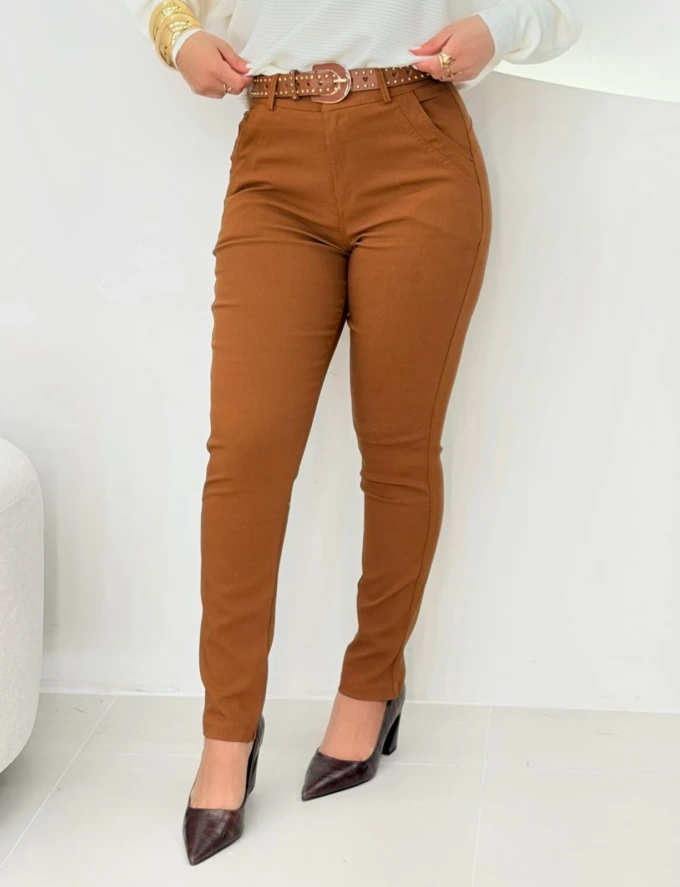 Calça com modelagem impecável que valoriza o corpo e alonga a silhueta. Possui caimento perfeito, tecido encorpado com elasticidade e acompanha cinto no mesmo tom da peça, trazendo ainda mais elegância ao look.