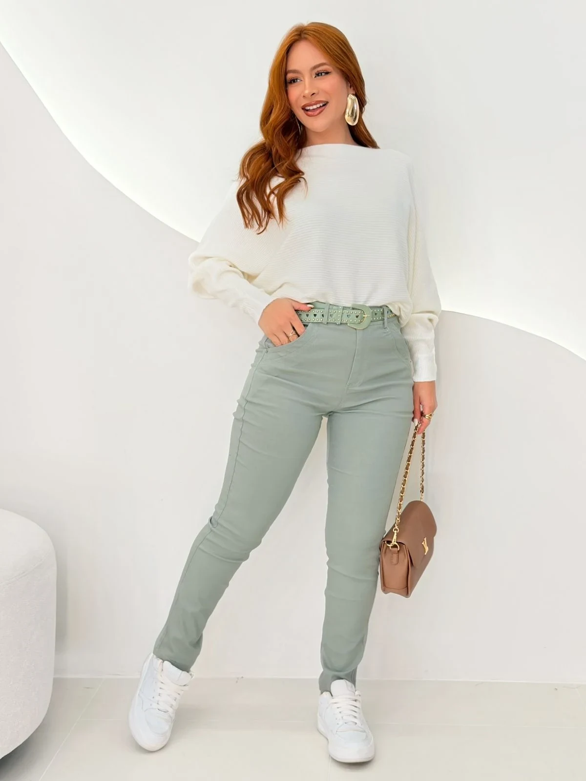 Calça com modelagem impecável que valoriza o corpo e alonga a silhueta. Possui caimento perfeito, tecido encorpado com elasticidade e acompanha cinto no mesmo tom da peça, trazendo ainda mais elegância ao look.