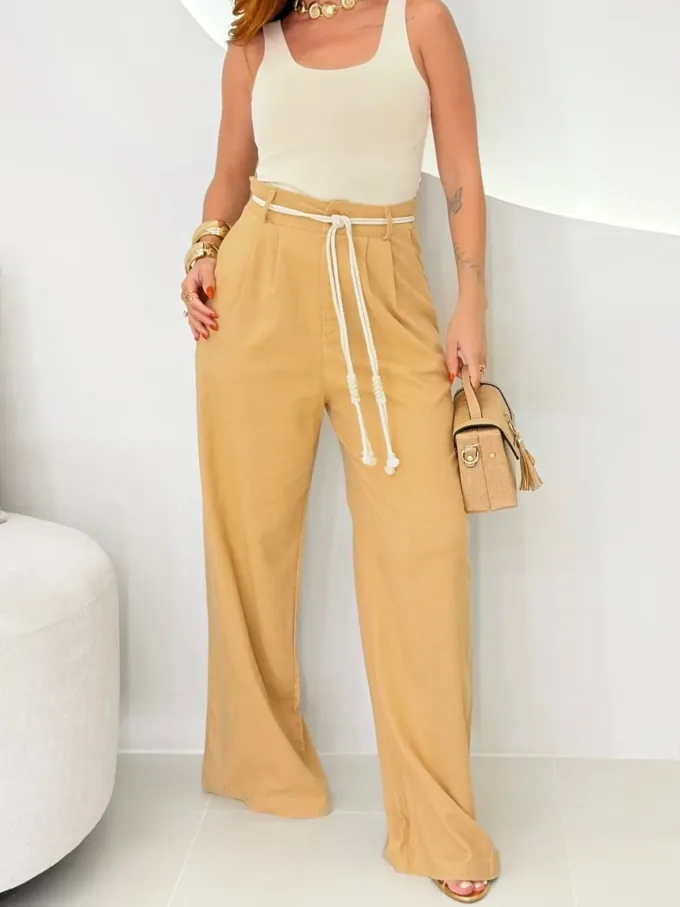 A Calça Rute é confeccionada em tecido nobre com toque natural e caimento impecável. A mistura de linho com algodão traz estrutura, frescor e muito conforto — perfeita para dias mais quentes sem perder a elegância.