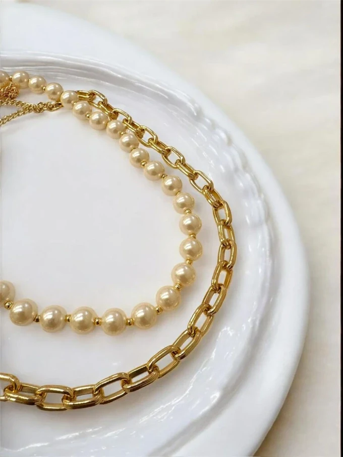 Colar elegante que combina corrente dourada com pérolas delicadas, criando um visual sofisticado e atemporal. Uma peça versátil que complementa desde looks casuais até produções mais elegantes.