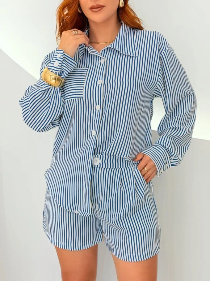 Conjunto feminino composto por camisa e short, confeccionado em tecido leve, confortável e com excelente caimento.