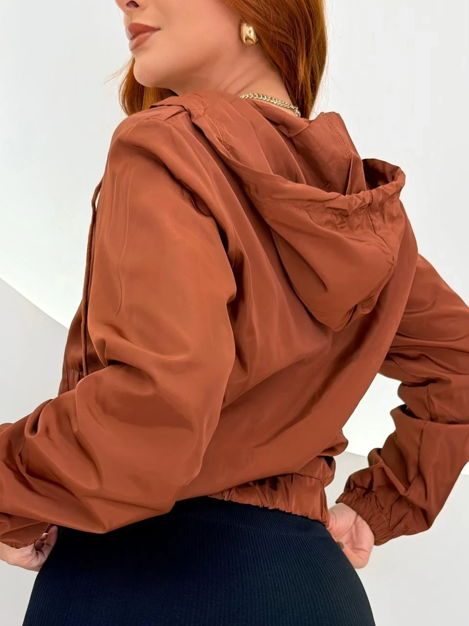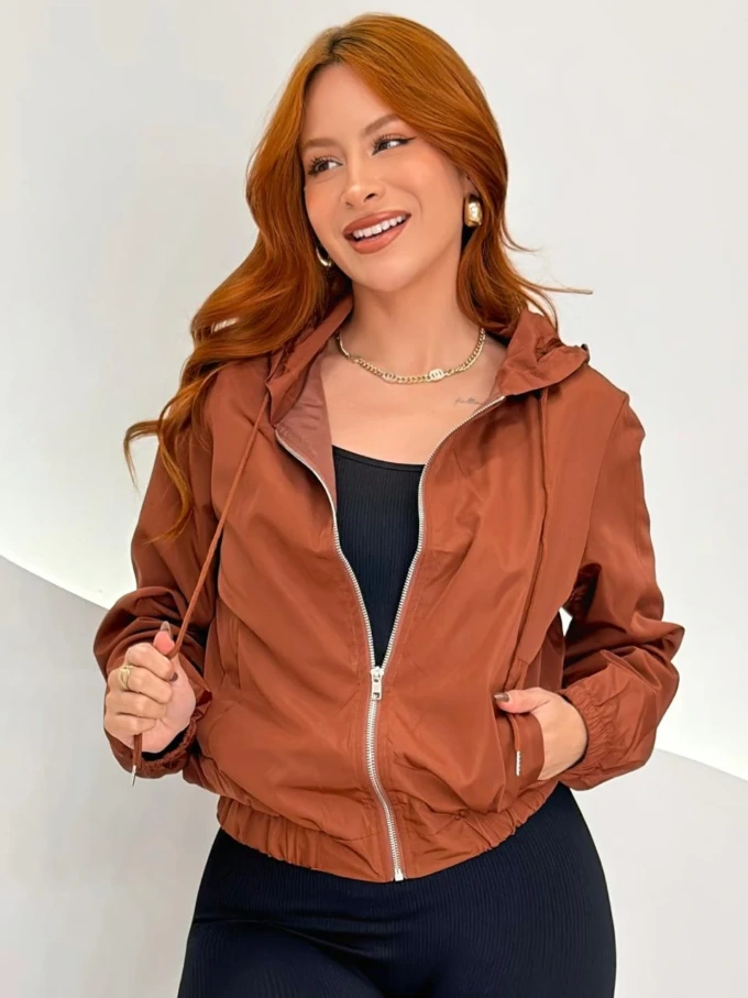 Corta-vento feminino leve e versátil, ideal para os dias mais frescos. Possui capuz com ajuste, fechamento em zíper frontal, bolsos laterais e elástico nos punhos e na barra, proporcionando conforto e ótimo caimento. Uma peça prática e moderna para compor looks casuais.