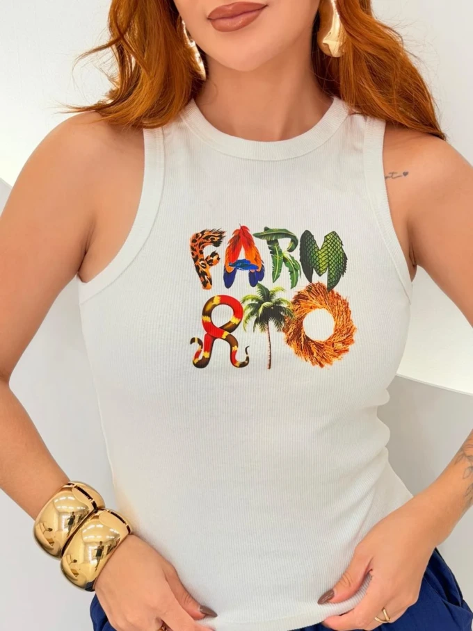 Regata em malha canelada com excelente elasticidade e conforto. Modelo moderno e versátil, ideal para compor looks casuais ou estilosos no dia a dia. As estampas exclusivas trazem personalidade à peça, deixando o visual leve e cheio de estilo.