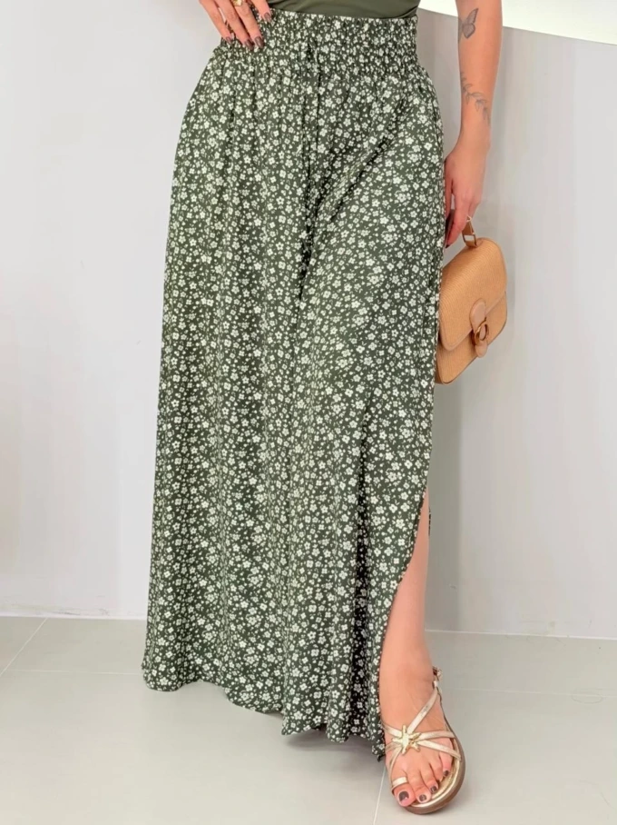 Saia Giovana – Verde com florzinha brancas